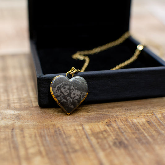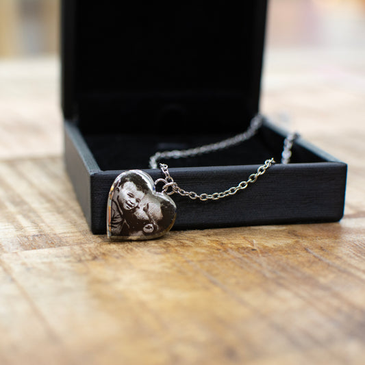 Stainless Steel Personalised Photo & Text Heart Shaped Necklace